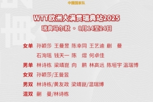 接下來(lái),國(guó)乒將要參加WTT瑞典大滿(mǎn)貫的比賽。比賽時(shí)間為8月14日-8月24日。
