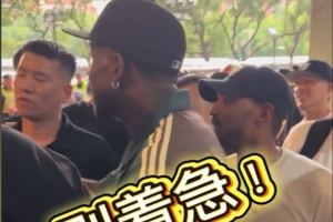 視頻中,愛德華茲用中文向球迷們喊話,讓球迷們別著急,他會一一簽完。參加活動時華子還拿著一個瓶子。