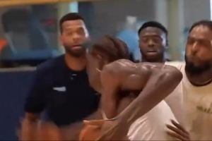 艾頓參與多人對(duì)抗訓(xùn)練錘煉持球進(jìn)攻,展現(xiàn)轉(zhuǎn)身拋投、歐洲步上籃、急停跳投、中遠(yuǎn)投等進(jìn)攻技巧。